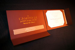 This 12-piece publication was held together by a complex custom die-cut envelope and featured liberal use of metallic inks, custom foil stamps, and advanced varnishing techniques. It is by far one of the most expensive projects I have ever worked on.